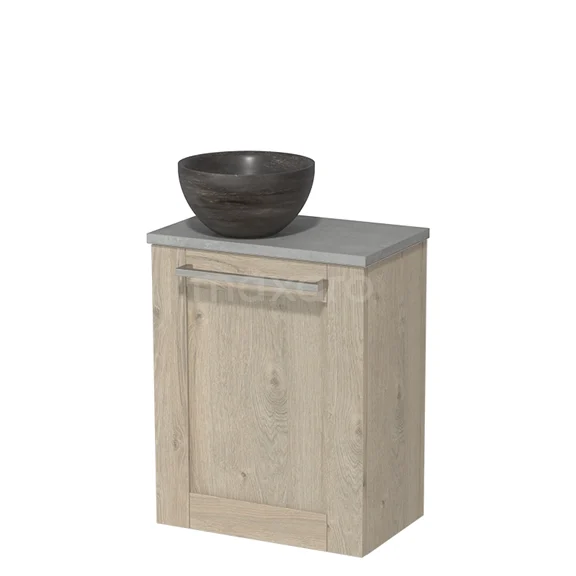 WC-Möbel mit Aufsatzwaschbecken | 41 cm hellgraue Eiche Rahmenfront Blaustein Naturstein Aufsatzwaschbecken hellgrauer Beton