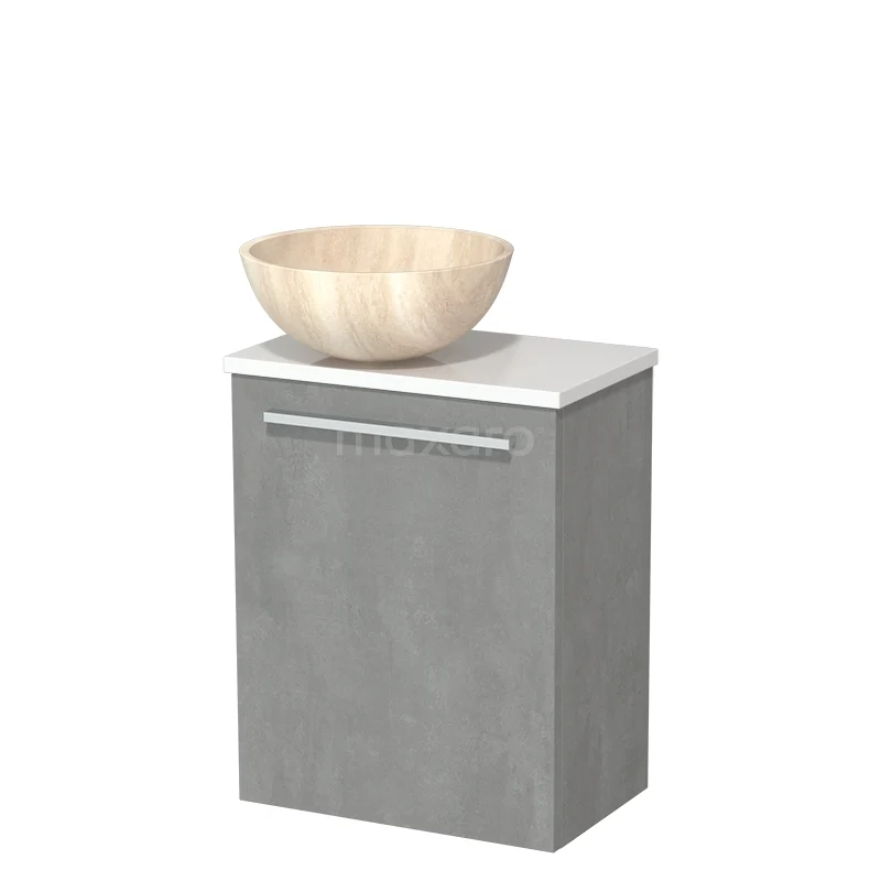 WC-Möbel mit Aufsatzwaschbecken | 41 cm Hellgrauer Beton Glatte Front Aufsatzwaschbecken aus Naturstein Hochglanz Weiß