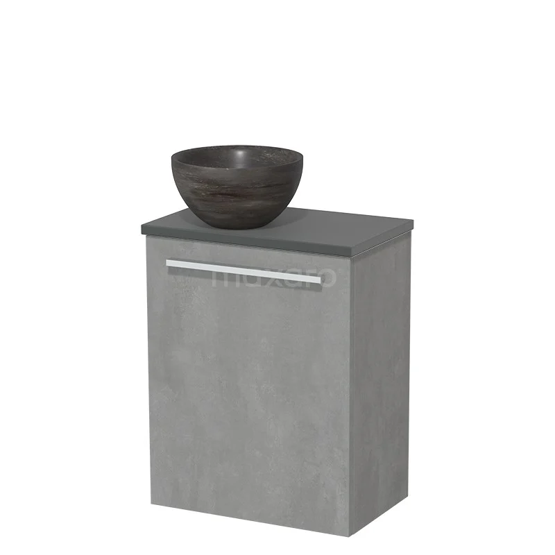 WC-Möbel mit Aufsatzwaschbecken | 41 cm Hellgrauer Beton Glatte Front Blaustein Naturstein Aufsatzwaschbecken Dunkelgraue Platte