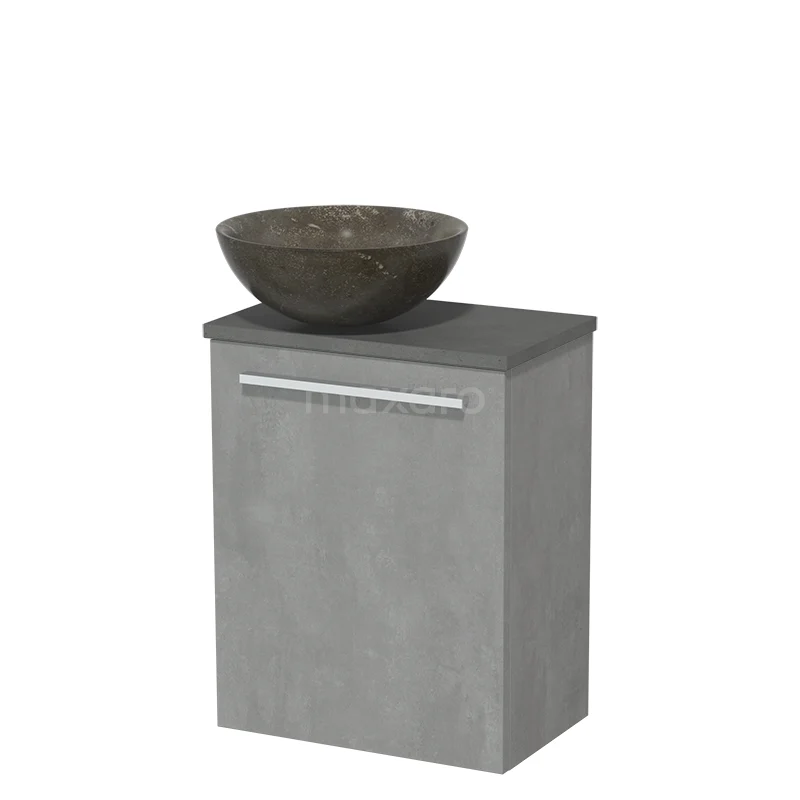 WC-Möbel mit Aufsatzwaschbecken | 41 cm hellgrauer Beton glatte Front Blaustein Naturstein Aufsatzwaschbecken dunkelgrauer Beton