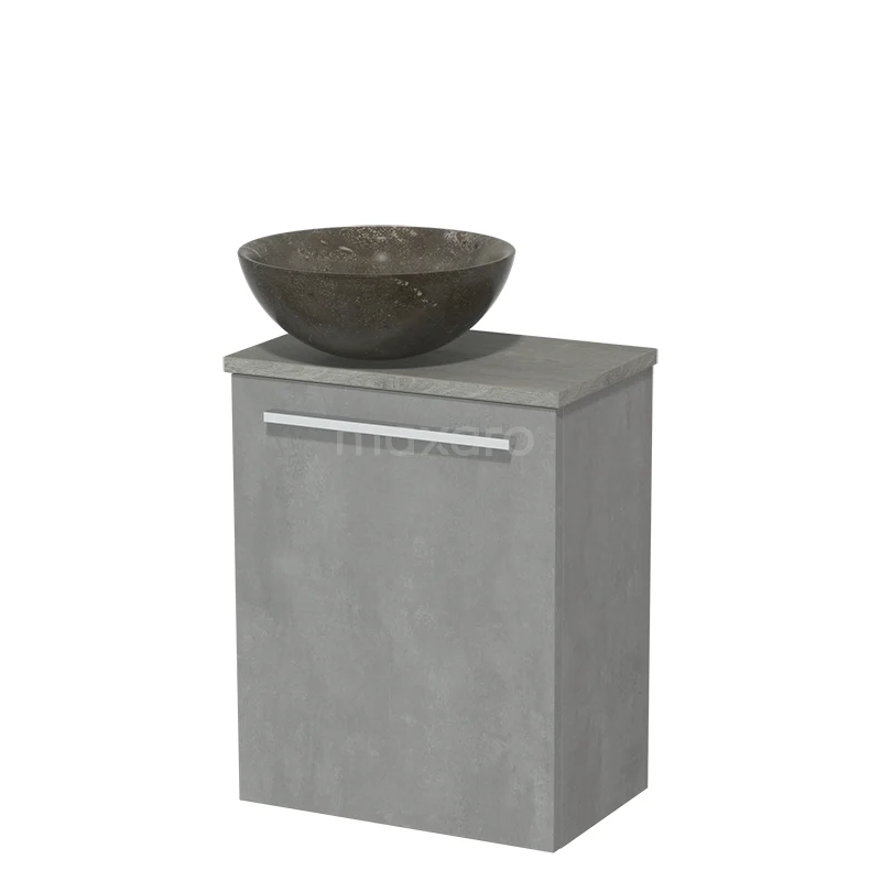 WC-Möbel mit Aufsatzwaschbecken | 41 cm hellgrauer Beton glatte Front Blaustein Naturstein Aufsatzwaschbecken graue Eiche