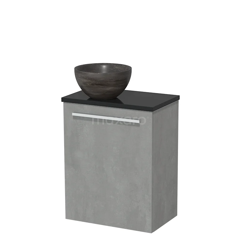 WC-Möbel mit Aufsatzwaschbecken | 41 cm Hellgrauer Beton Glatte Front Blaustein Naturstein-Aufsatzwaschbecken Hochglanz Schwarz