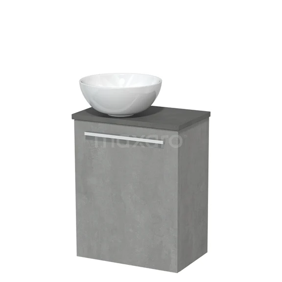 WC-Möbel mit Aufsatzwaschbecken | 41 cm Hellgrauer Beton Glatte Front Hochglanz Weiß Aufsatzwaschbecken aus Keramik Dunkelgrauer Beton Platte