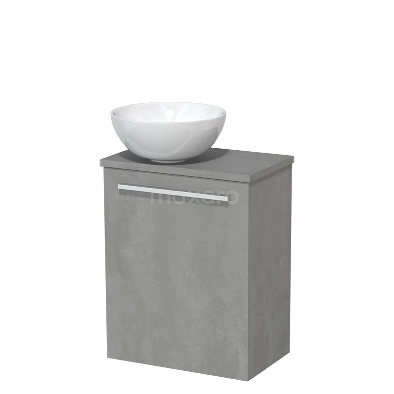 WC-Möbel mit Aufsatzwaschbecken | 41 cm Hellgrauer Beton Glatte Front Hochglanz Weiß Aufsatzwaschbecken aus Keramik Hellgrauer Beton Platte