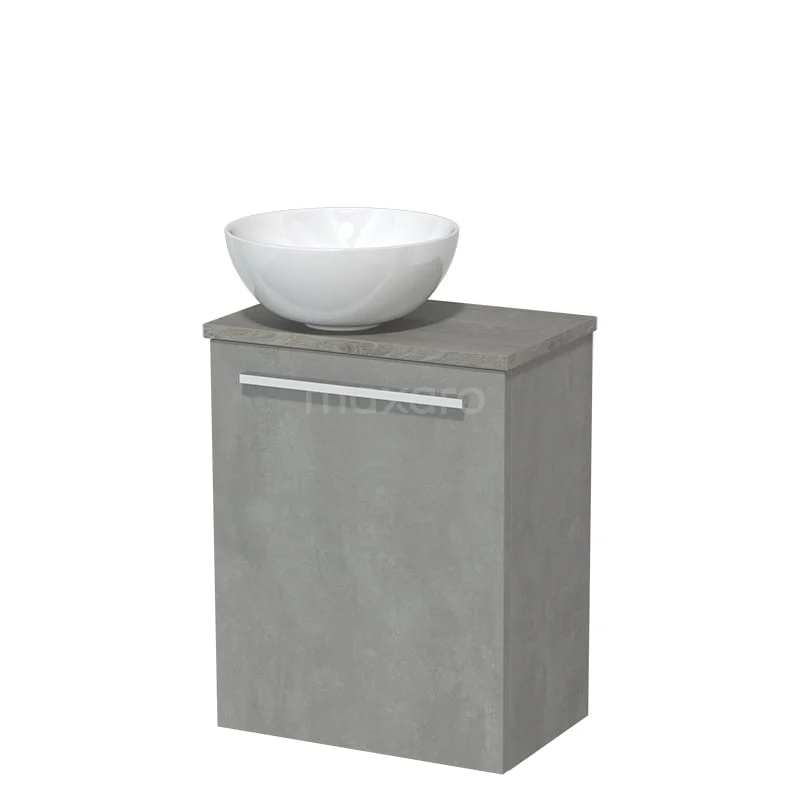 WC-Möbel mit Aufsatzwaschbecken | 41 cm Hellgrauer Beton Glatte Front Hochglanz Weiß Keramik-Aufsatzwaschbecken Graue Eiche Platte