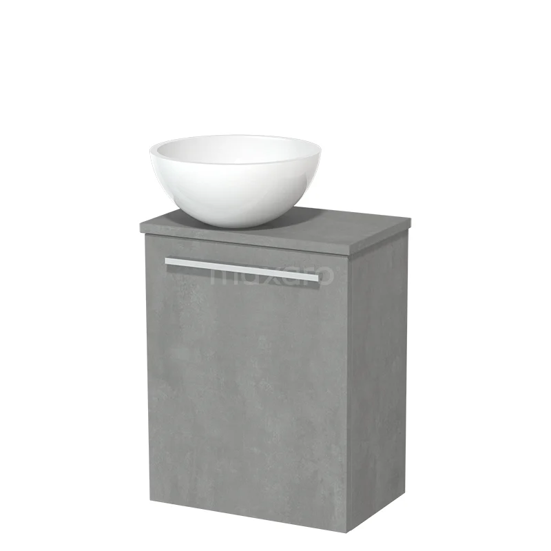 WC-Möbel mit Aufsatzwaschbecken | 41 cm Hellgrauer Beton Glatte Front Hochglanz Weiß Mineralguss Aufsatzwaschbecken Hellgrauer Beton Platte