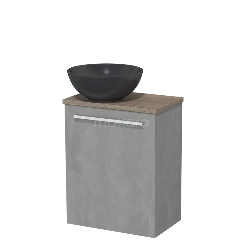 WC-Möbel mit Aufsatzwaschbecken | 41 cm Hellgrauer Beton Glatte Front Matt Schwarz Quarz Aufsatzwaschbecken Eiche Platte