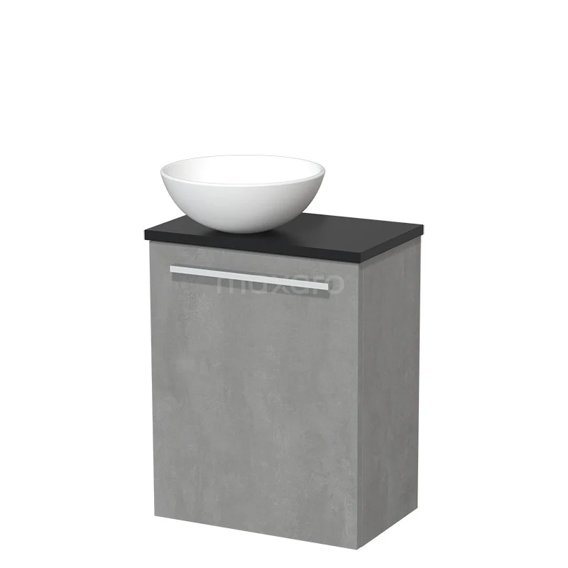 WC-Möbel mit Aufsatzwaschbecken | 41 cm Hellgrauer Beton Glatte Front Matt Weiß Aufsatzwaschbecken aus Keramik Matt Schwarz