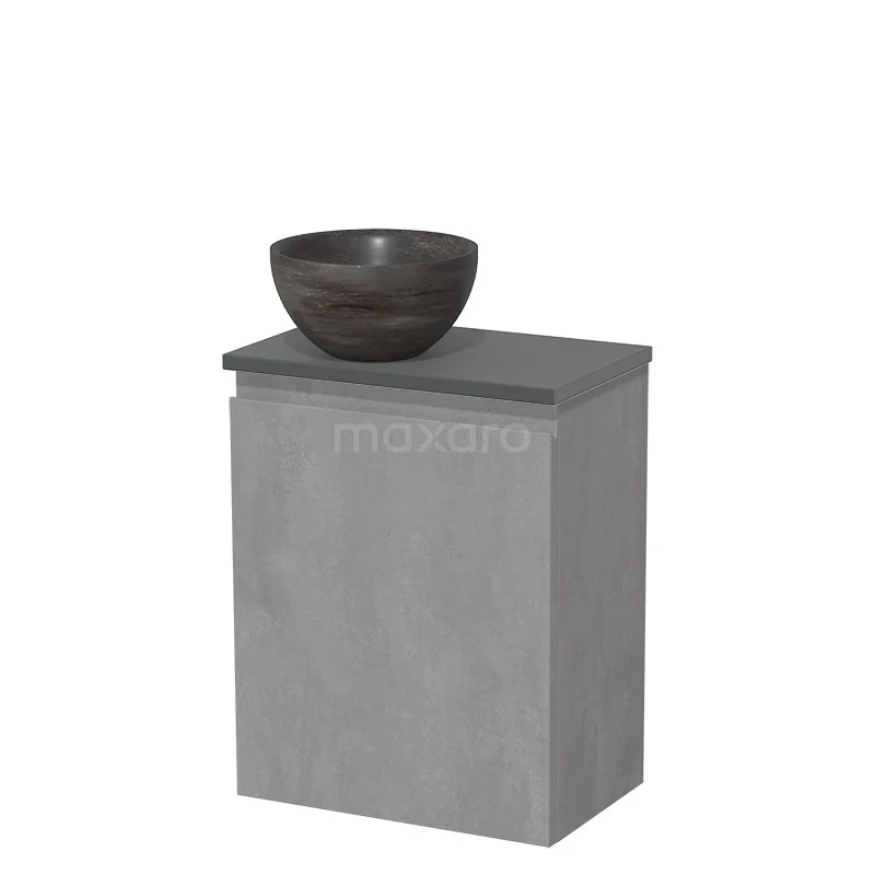 WC-Möbel mit Aufsatzwaschbecken | 41 cm Hellgrauer Beton Grifflose Front Blaustein Naturstein-Aufsatzwaschbecken Dunkelgraue Platte