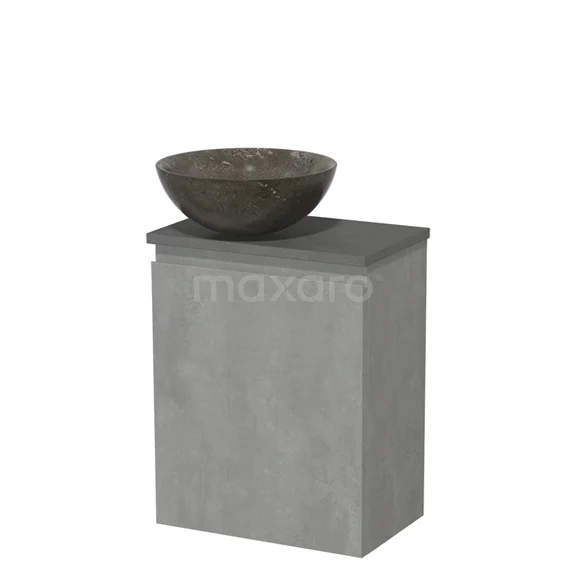 WC-Möbel mit Aufsatzwaschbecken | 41 cm Hellgrauer Beton Grifflose Front Blaustein Naturstein-Aufsatzwaschbecken Dunkelgrauer Beton Platte