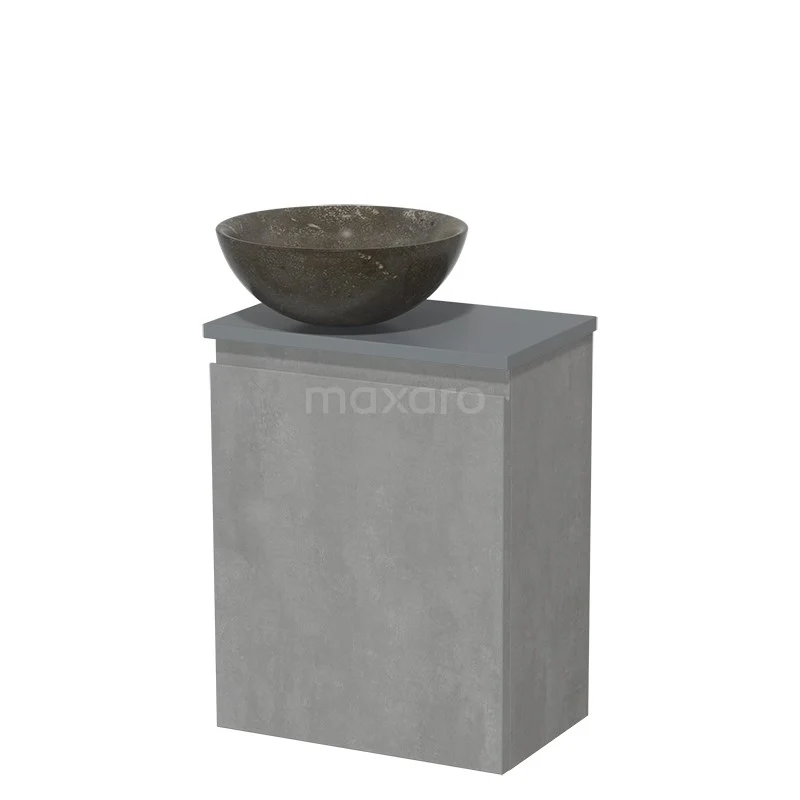 WC-Möbel mit Aufsatzwaschbecken | 41 cm Hellgrauer Beton Grifflose Front Blaustein Naturstein-Aufsatzwaschbecken Mittelgraue Platte