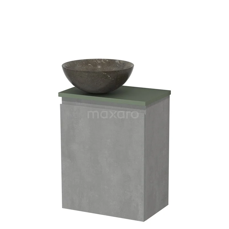WC-Möbel mit Aufsatzwaschbecken | 41 cm Hellgrauer Beton Grifflose Front Blaustein Naturstein-Aufsatzwaschbecken Salbeigrün