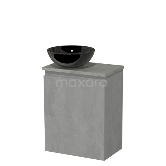 WC-Möbel mit Aufsatzwaschbecken | 41 cm Hellgrauer Beton Grifflose Front Hochglanz Schwarz Aufsatzwaschbecken aus Keramik Graue Eiche