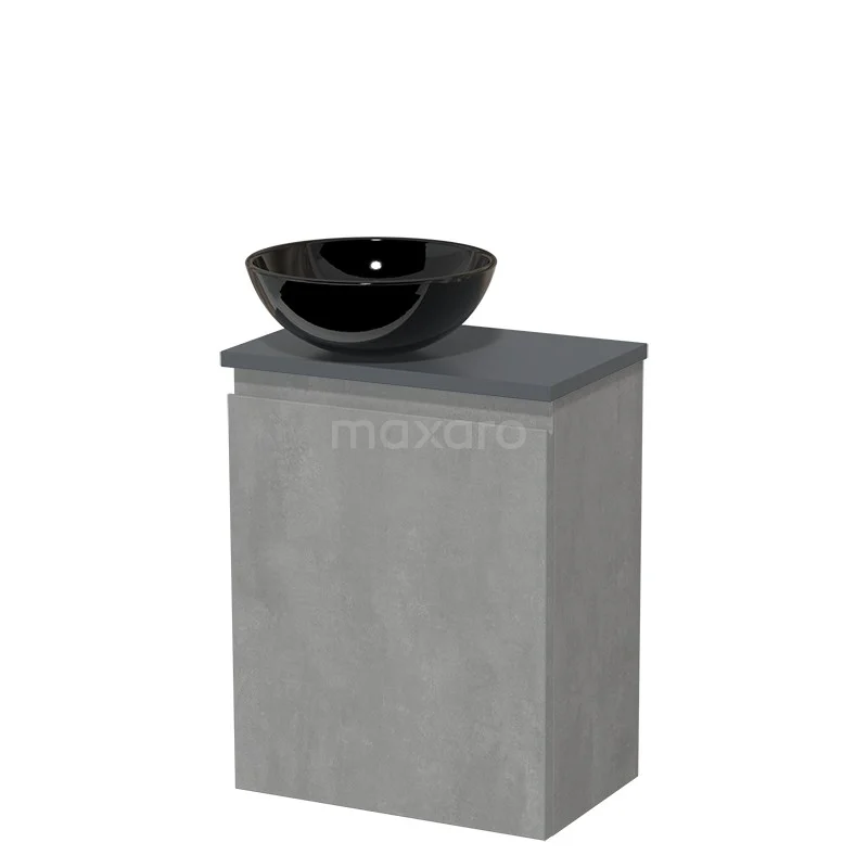WC-Möbel mit Aufsatzwaschbecken | 41 cm Hellgrauer Beton Grifflose Front Hochglanz Schwarz Keramik-Aufsatzwaschbecken Dunkelgraue Platte
