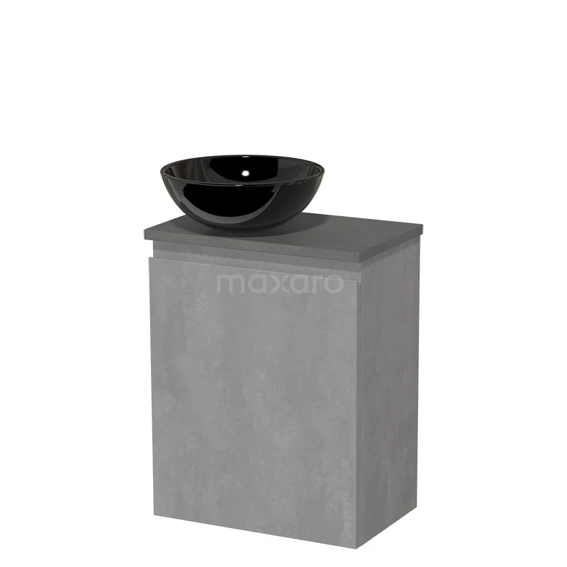 WC-Möbel mit Aufsatzwaschbecken | 41 cm Hellgrauer Beton Grifflose Front Hochglanz Schwarz Keramik-Aufsatzwaschbecken Dunkelgrauer Beton Platte