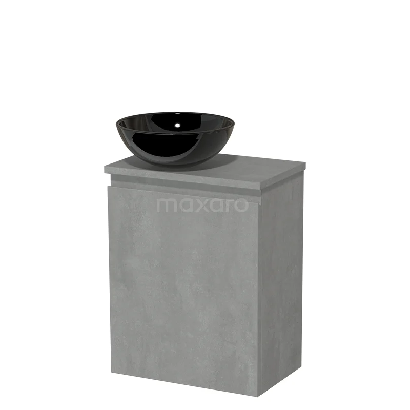 WC-Möbel mit Aufsatzwaschbecken | 41 cm Hellgrauer Beton Grifflose Front Hochglanz Schwarz Keramik-Aufsatzwaschbecken Hellgrauer Beton