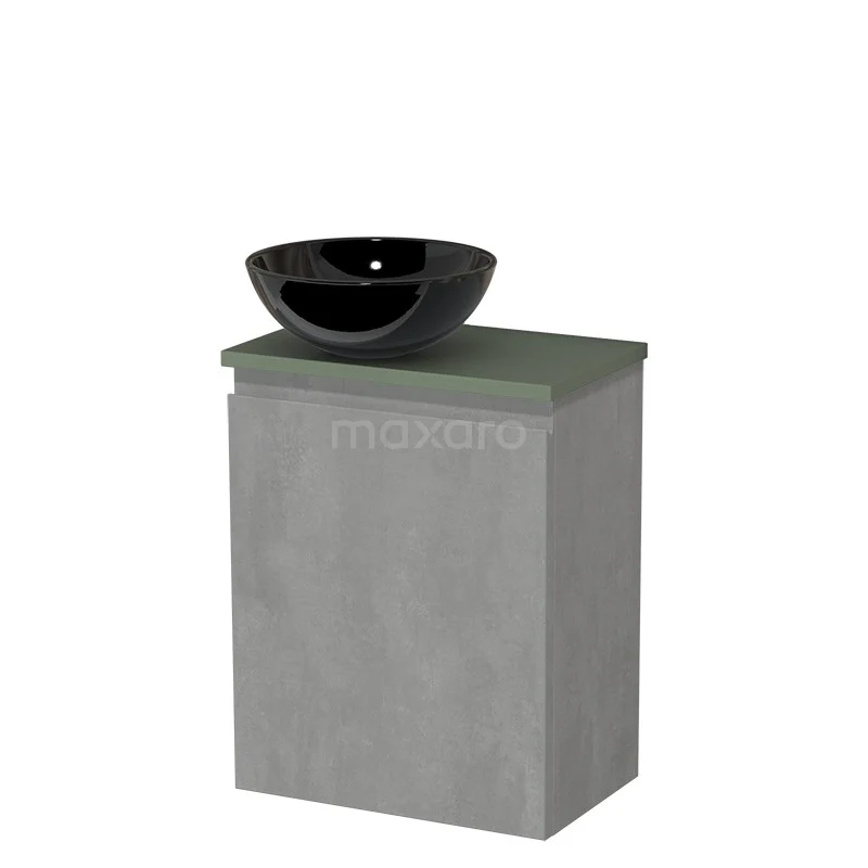 WC-Möbel mit Aufsatzwaschbecken | 41 cm Hellgrauer Beton Grifflose Front Hochglanz Schwarz Keramik-Aufsatzwaschbecken Salbeigrün