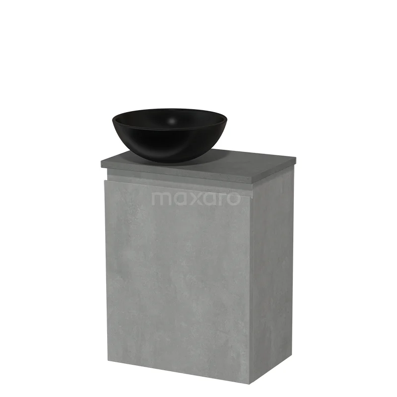 WC-Möbel mit Aufsatzwaschbecken | 41 cm Hellgrauer Beton Grifflose Front Matt Schwarz Keramik-Aufsatzwaschbecken Dunkelgrauer Beton Platte