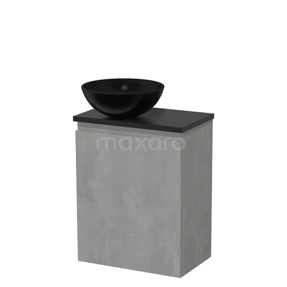 WC-Möbel mit Aufsatzwaschbecken | 41 cm Hellgrauer Beton Grifflose Front Matt Schwarz Keramik-Aufsatzwaschbecken Matt Schwarz Platte