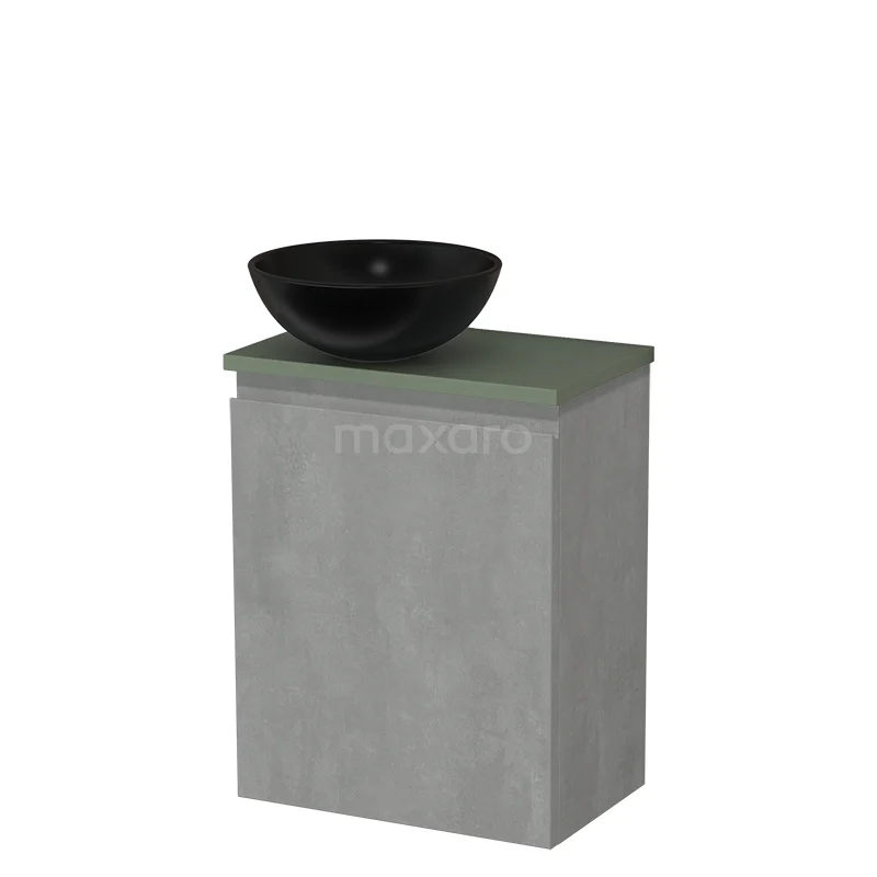 WC-Möbel mit Aufsatzwaschbecken | 41 cm Hellgrauer Beton Grifflose Front Matt Schwarz Keramik-Aufsatzwaschbecken Salbeigrün