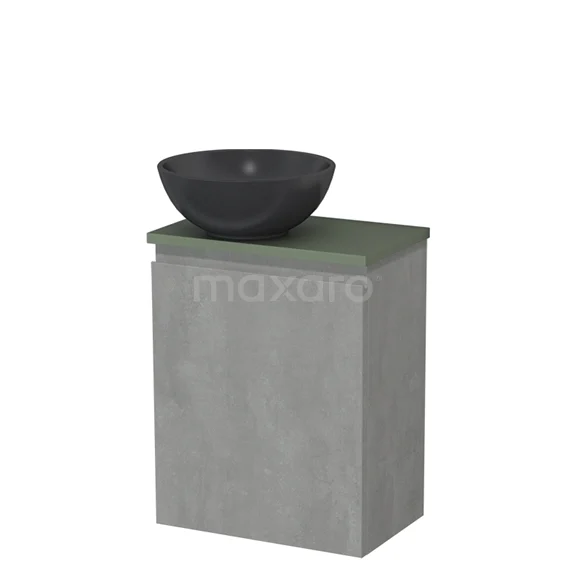 WC-Möbel mit Aufsatzwaschbecken | 41 cm Hellgrauer Beton Grifflose Front Matt Schwarz Quarz Aufsatzwaschbecken Salbeigrüne Platte