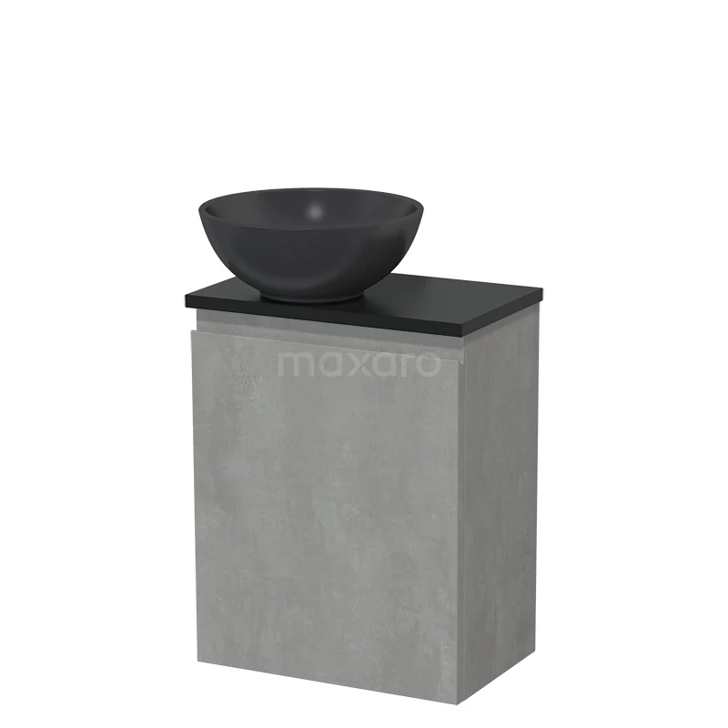 WC-Möbel mit Aufsatzwaschbecken | 41 cm Hellgrauer Beton Grifflose Front Matt Schwarzes Quarz Aufsatzwaschbecken Matt Schwarze Platte