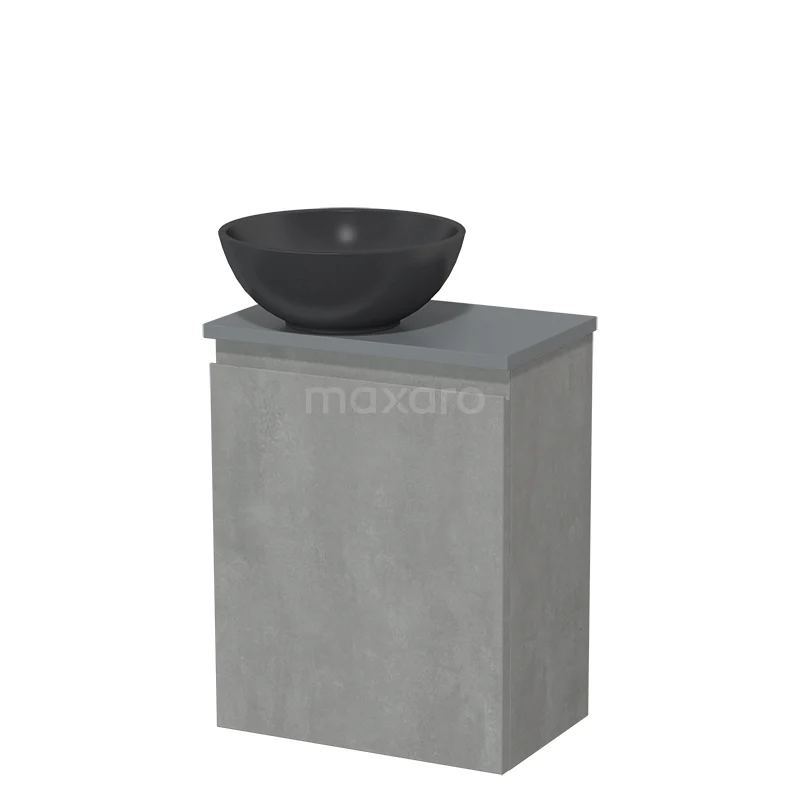 WC-Möbel mit Aufsatzwaschbecken | 41 cm Hellgrauer Beton Grifflose Front Matt Schwarzes Quarz Aufsatzwaschbecken Mittelgraue Platte