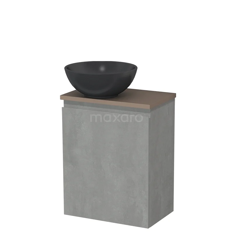 WC-Möbel mit Aufsatzwaschbecken | 41 cm Hellgrauer Beton Grifflose Front Matt Schwarzes Quarz Aufsatzwaschbecken Taupe Platte