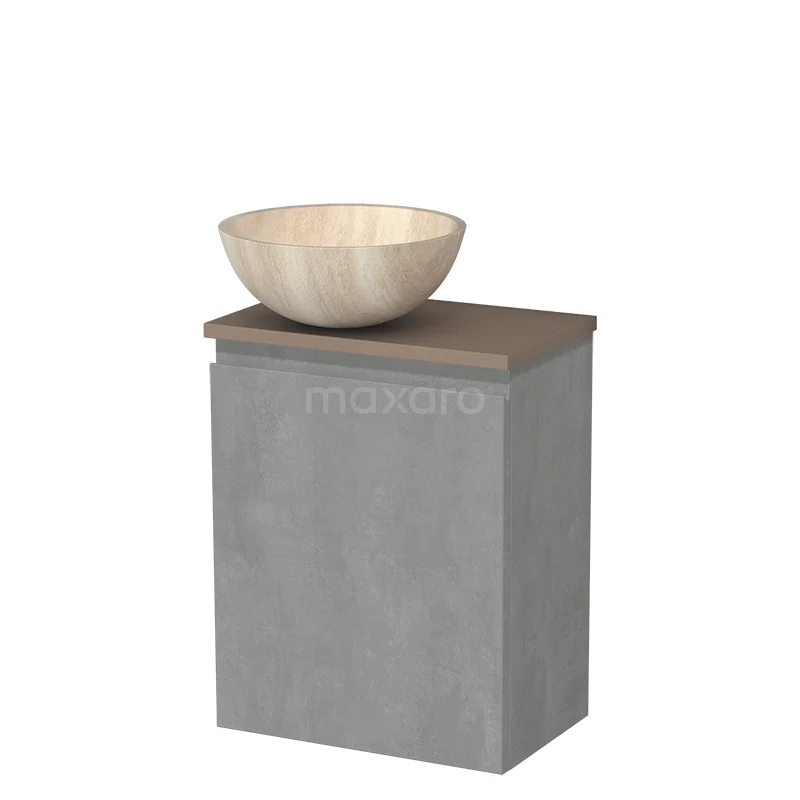 WC-Möbel mit Aufsatzwaschbecken | 41 cm Hellgrauer Beton Grifflose Front Travertin Naturstein Aufsatzwaschbecken Taupe Platte