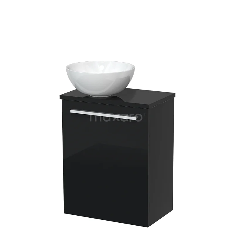 WC-Möbel mit Aufsatzwaschbecken | 41 cm Hochglanz Schwarz Glatte Front Hochglanz Weiß Aufsatzwaschbecken aus Keramik Hochglanz Schwarz
