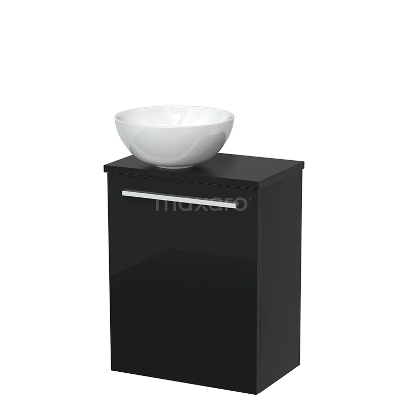 WC-Möbel mit Aufsatzwaschbecken | 41 cm Hochglanz Schwarz Glatte Front Hochglanz Weiß Keramik Aufsatzwaschbecken Matt Schwarz Platte