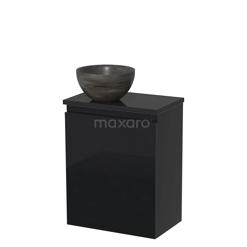 WC-Möbel mit Aufsatzwaschbecken | 41 cm Hochglanz Schwarz Grifflose Front Blaustein Naturstein-Aufsatzwaschbecken Hochglanz Schwarz Platte