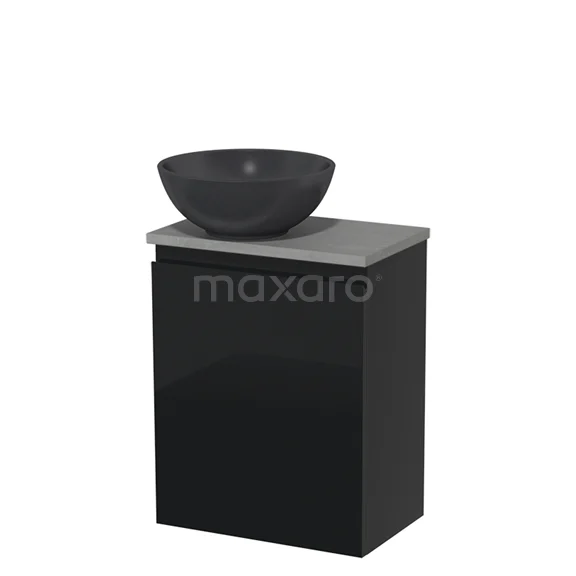 WC-Möbel mit Aufsatzwaschbecken | 41 cm Hochglanz Schwarz Grifflose Front Matt Schwarz Quarz Aufsatzwaschbecken Hellgrauer Beton Platte