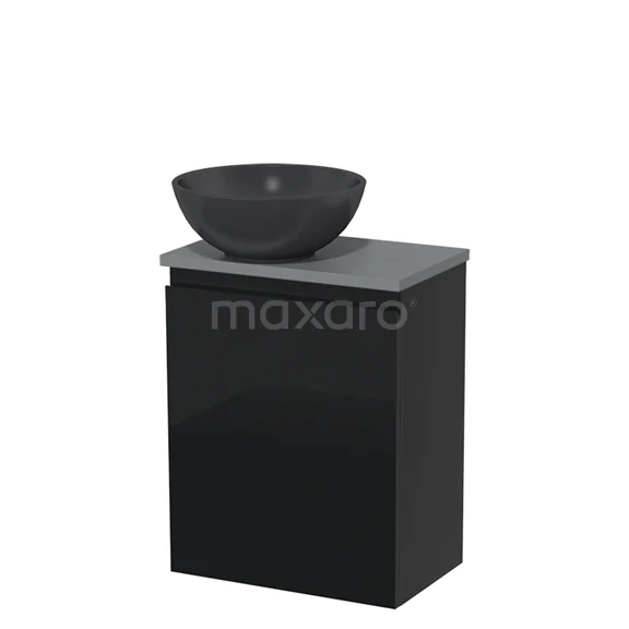 WC-Möbel mit Aufsatzwaschbecken | 41 cm Hochglanz Schwarz Grifflose Front Matt Schwarz Quarz Aufsatzwaschbecken Mittelgraue Platte