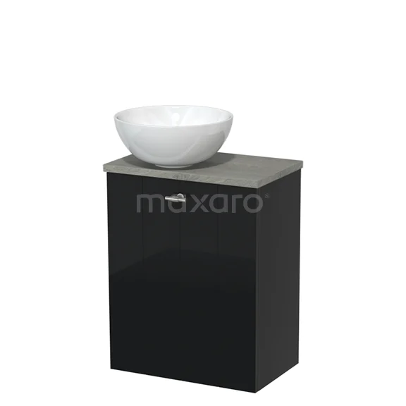WC-Möbel mit Aufsatzwaschbecken | 41 cm Hochglanz Schwarz Lamellen Front Hochglanz Weiß Keramik Aufsatzwaschbecken Graue Eiche
