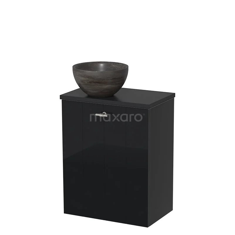WC-Möbel mit Aufsatzwaschbecken | 41 cm Hochglanz Schwarz Lamellenfront Blaustein Naturstein Aufsatzwaschbecken Matt Schwarz Platte