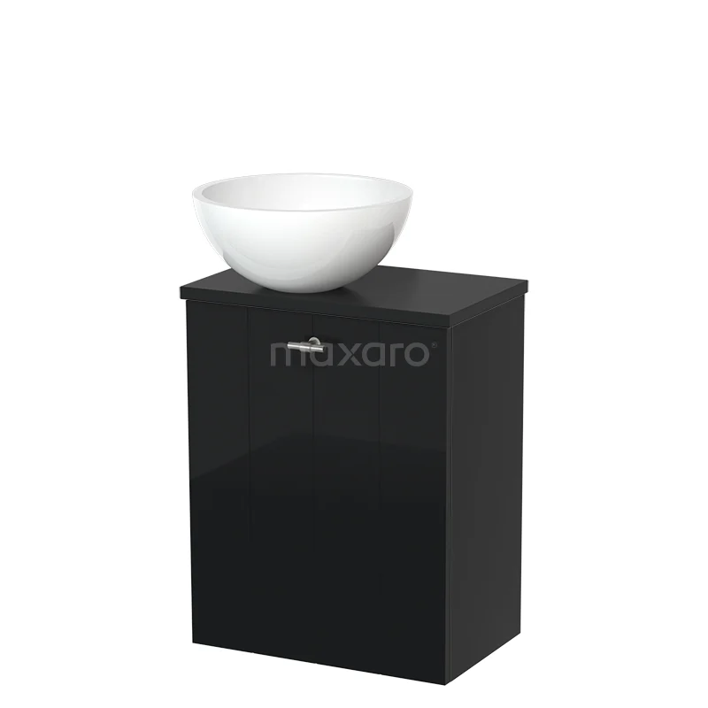 WC-Möbel mit Aufsatzwaschbecken | 41 cm Hochglanz Schwarz Lamellenfront Hochglanz Weiß Mineralguss Aufsatzwaschbecken Matt Schwarz Platte