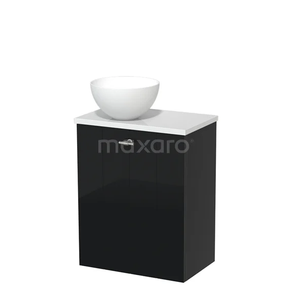 WC-Möbel mit Aufsatzwaschbecken | 41 cm Hochglanz Schwarz Lamellenfront Matt Weiß Aufsatzwaschbecken Hochglanz Weiß Platte