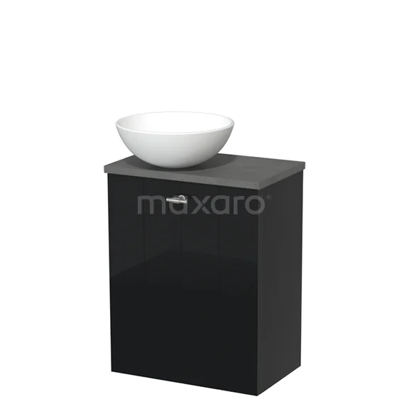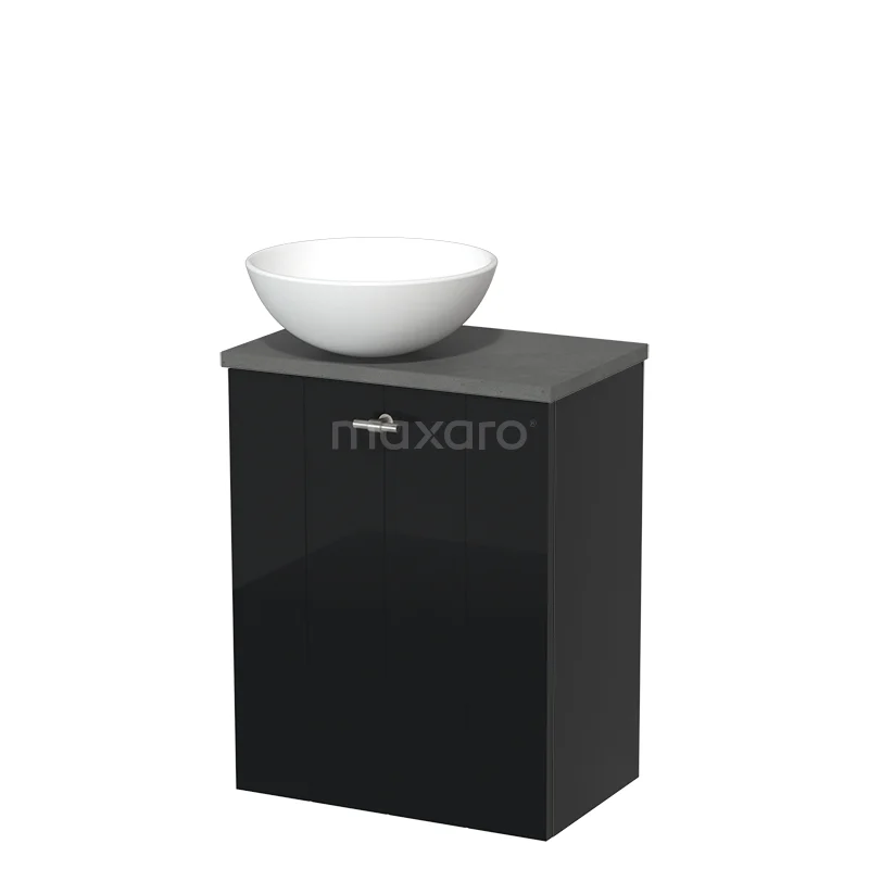 WC-Möbel mit Aufsatzwaschbecken | 41 cm Hochglanz Schwarz Lamellenfront Matt Weiß Keramik-Aufsatzwaschbecken Dunkelgrauer Beton Platte