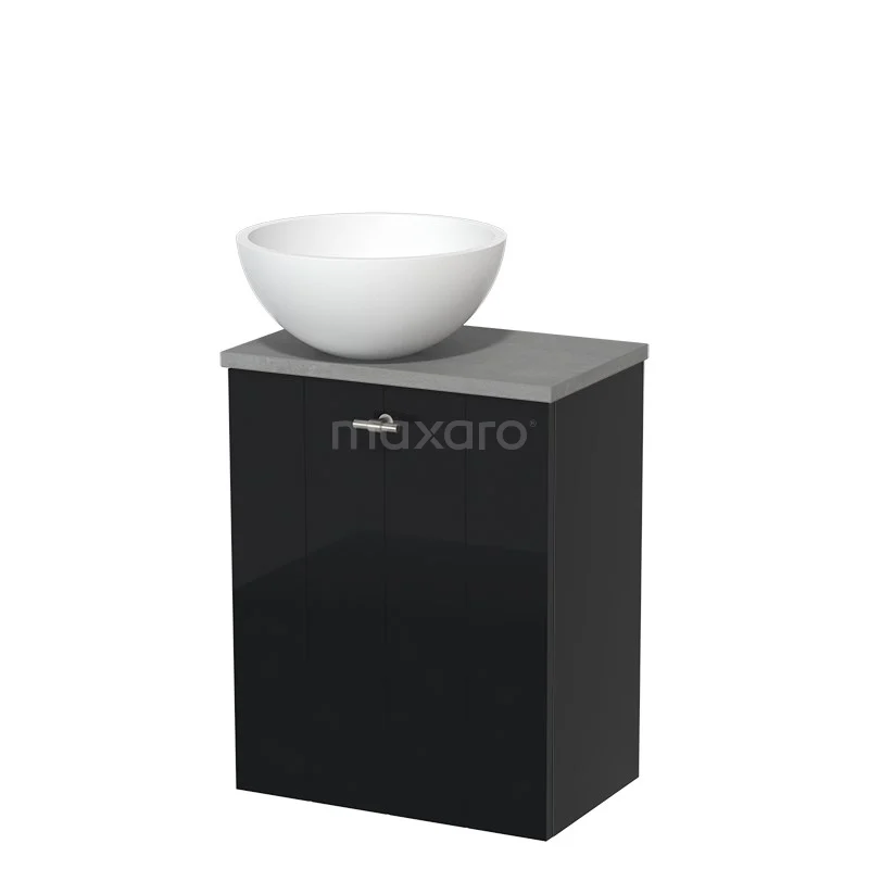 WC-Möbel mit Aufsatzwaschbecken | 41 cm Hochglanz Schwarz Lamellenfront Matt Weiß Solid Surface Aufsatzwaschbecken Hellgrauer Beton Platte