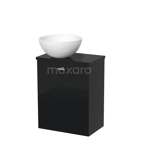 WC-Möbel mit Aufsatzwaschbecken | 41 cm Hochglanz Schwarz Lamellenfront Matt Weiß Solid Surface Aufsatzwaschbecken Hochglanz Schwarz