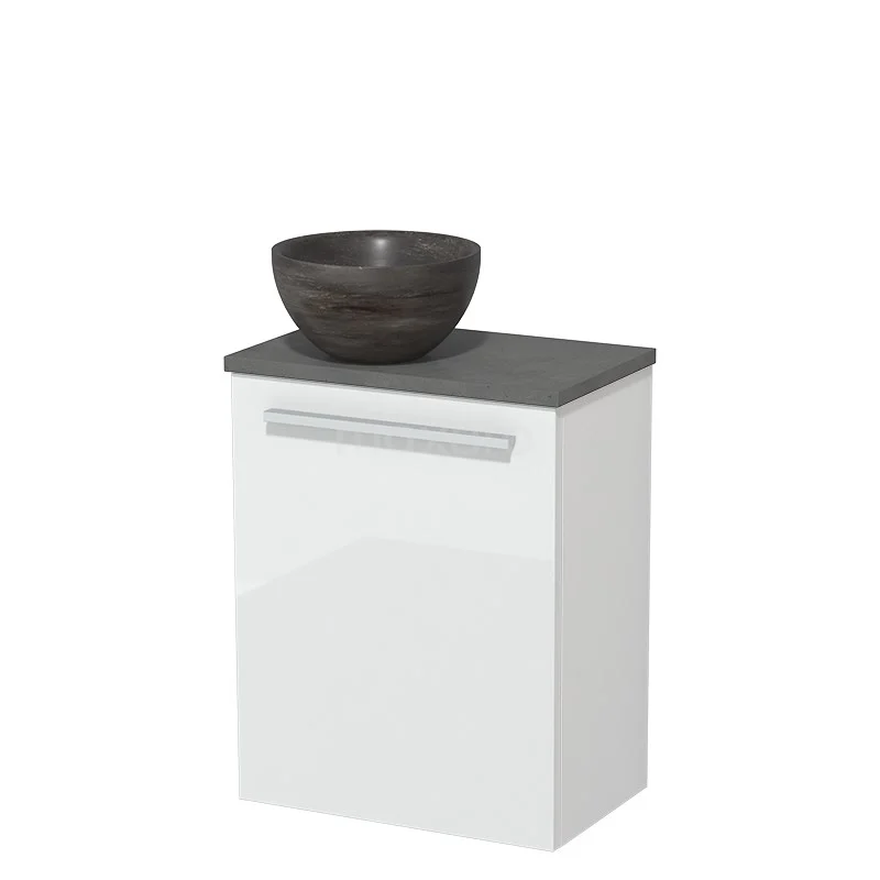 WC-Möbel mit Aufsatzwaschbecken | 41 cm Hochglanz Weiß Glatte Front Blaustein Naturstein Aufsatzwaschbecken Dunkelgrauer Beton Platte