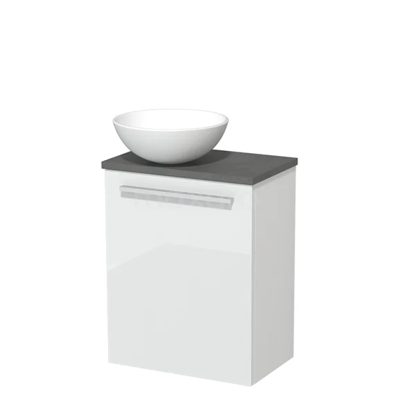 WC-Möbel mit Aufsatzwaschbecken | 41 cm Hochglanz Weiß Glatte Front Matt Weiß Keramik-Aufsatzwaschbecken Dunkelgrauer Beton Platte