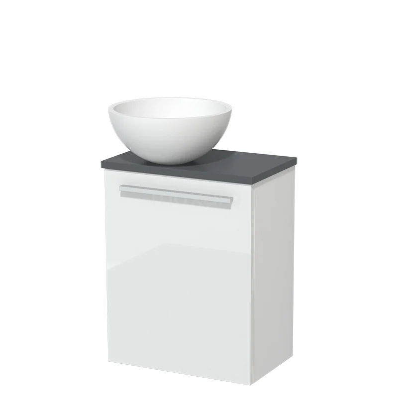 WC-Möbel mit Aufsatzwaschbecken | 41 cm Hochglanz Weiß Glatte Front Matt Weiß Solid Surface Aufsatzwaschbecken Dunkelgrau Platte