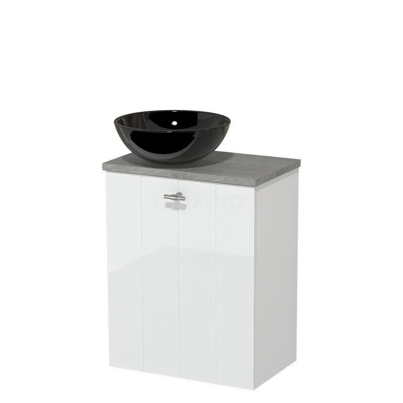 WC-Möbel mit Aufsatzwaschbecken | 41 cm Hochglanz Weiß Lamellenfront Hochglanz Schwarz Keramik Aufsatzwaschbecken Graue Eiche
