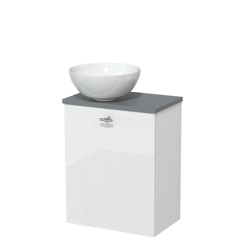 WC-Möbel mit Aufsatzwaschbecken | 41 cm Hochglanz Weiß Lamellenfront Hochglanz Weiß Keramik Aufsatzwaschbecken Mittelgrau Platte