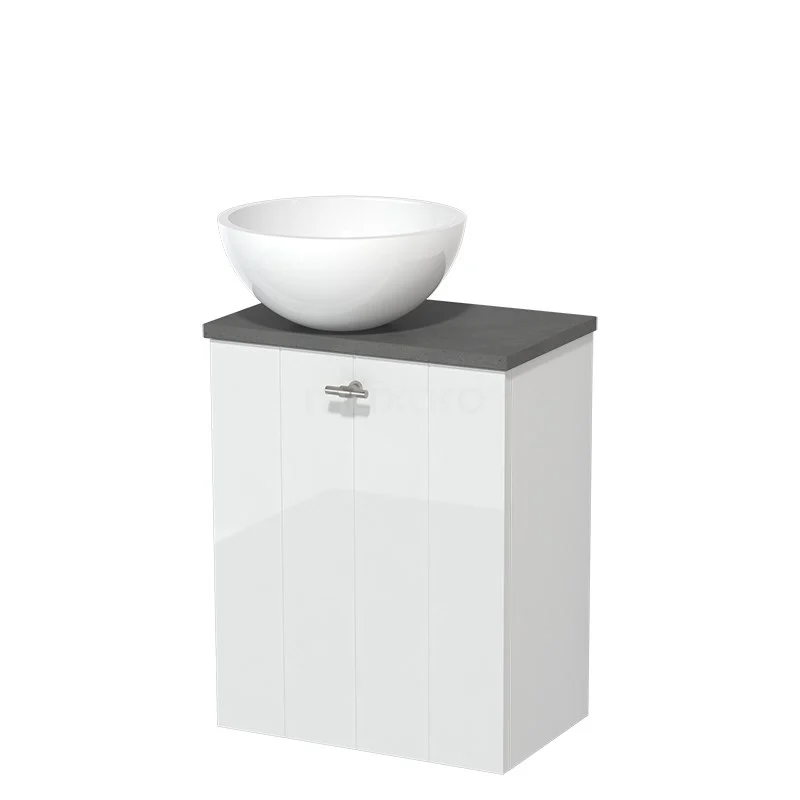 WC-Möbel mit Aufsatzwaschbecken | 41 cm Hochglanz Weiß Lamellenfront Hochglanz Weiß Mineralguss-Aufsatzwaschbecken Dunkelgrauer Beton Platte