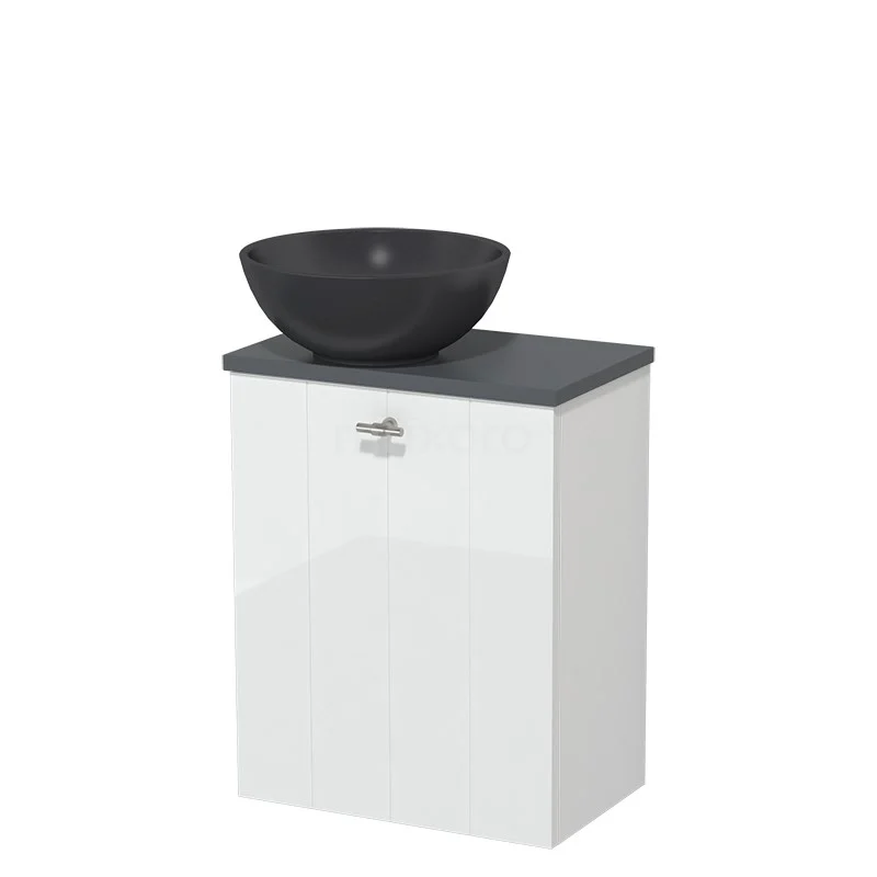 WC-Möbel mit Aufsatzwaschbecken | 41 cm Hochglanz Weiß Lamellenfront Matt Schwarz Quarz Aufsatzwaschbecken Dunkelgrau Platte