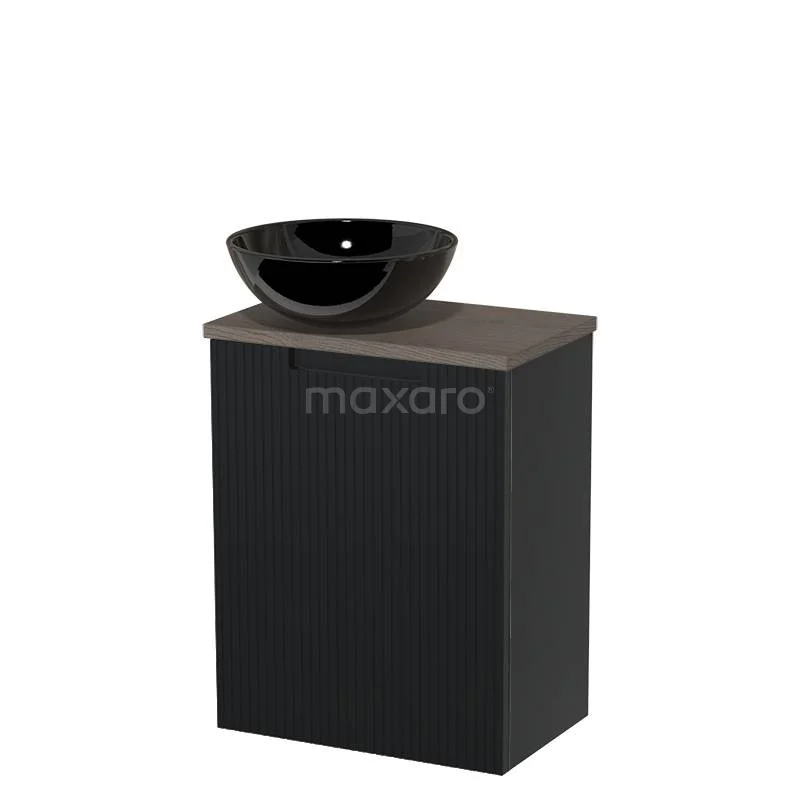 WC-Möbel mit Aufsatzwaschbecken | 41 cm Matt Schwarz Front Line Glanz Schwarz Keramik Aufsatzwaschbecken Dunkelbraune Eiche Platte