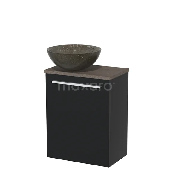 WC-Möbel mit Aufsatzwaschbecken | 41 cm Matt Schwarz Glatte Front Blaustein Naturstein Aufsatzwaschbecken Dunkelbraune Eiche